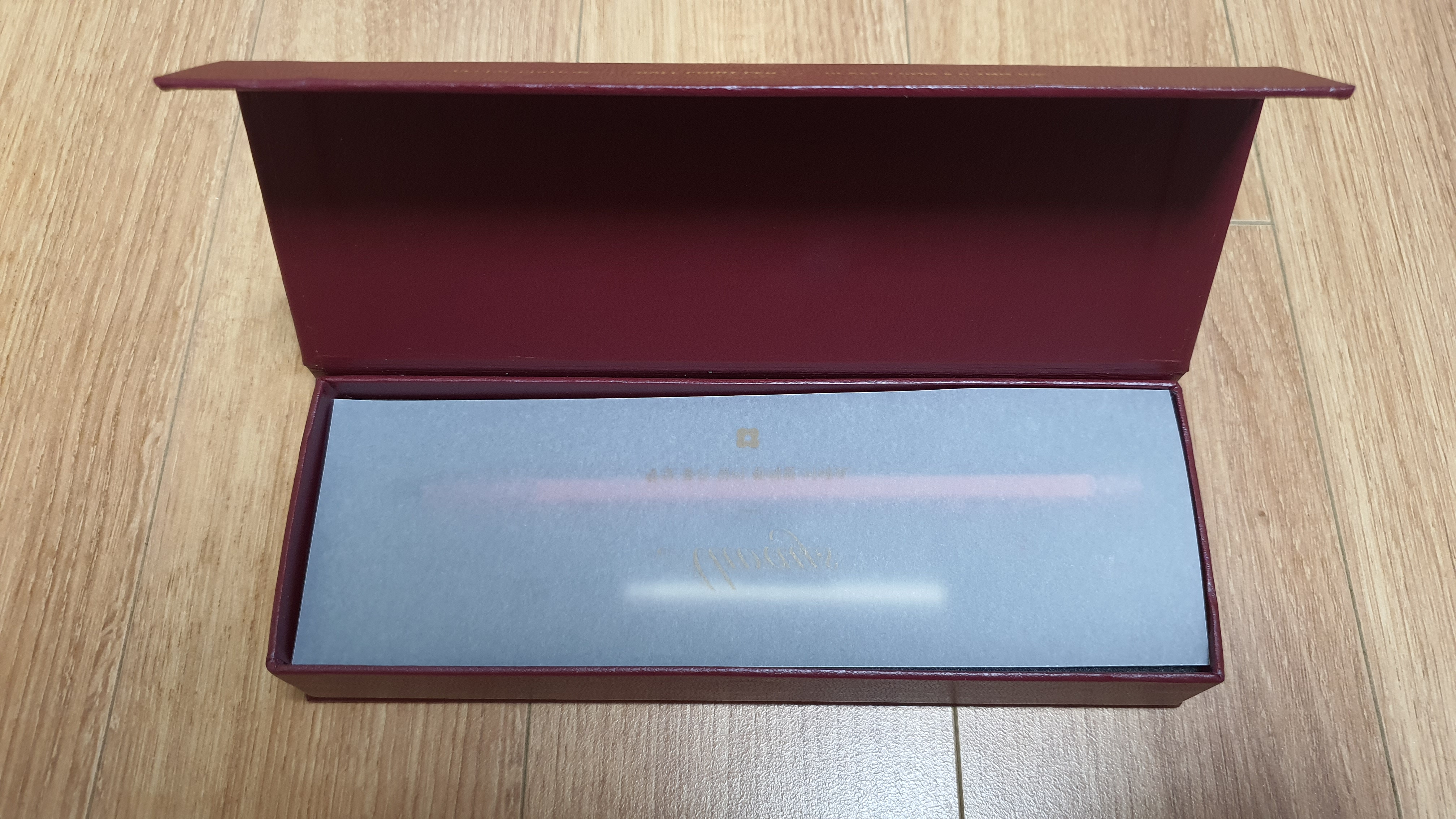 저번처럼 상자안에 하드 케이스가 들어있고 자석으로 고정된 케이스를 열면 안에 문구가 새겨진 투명종이가 들어 있습니다.