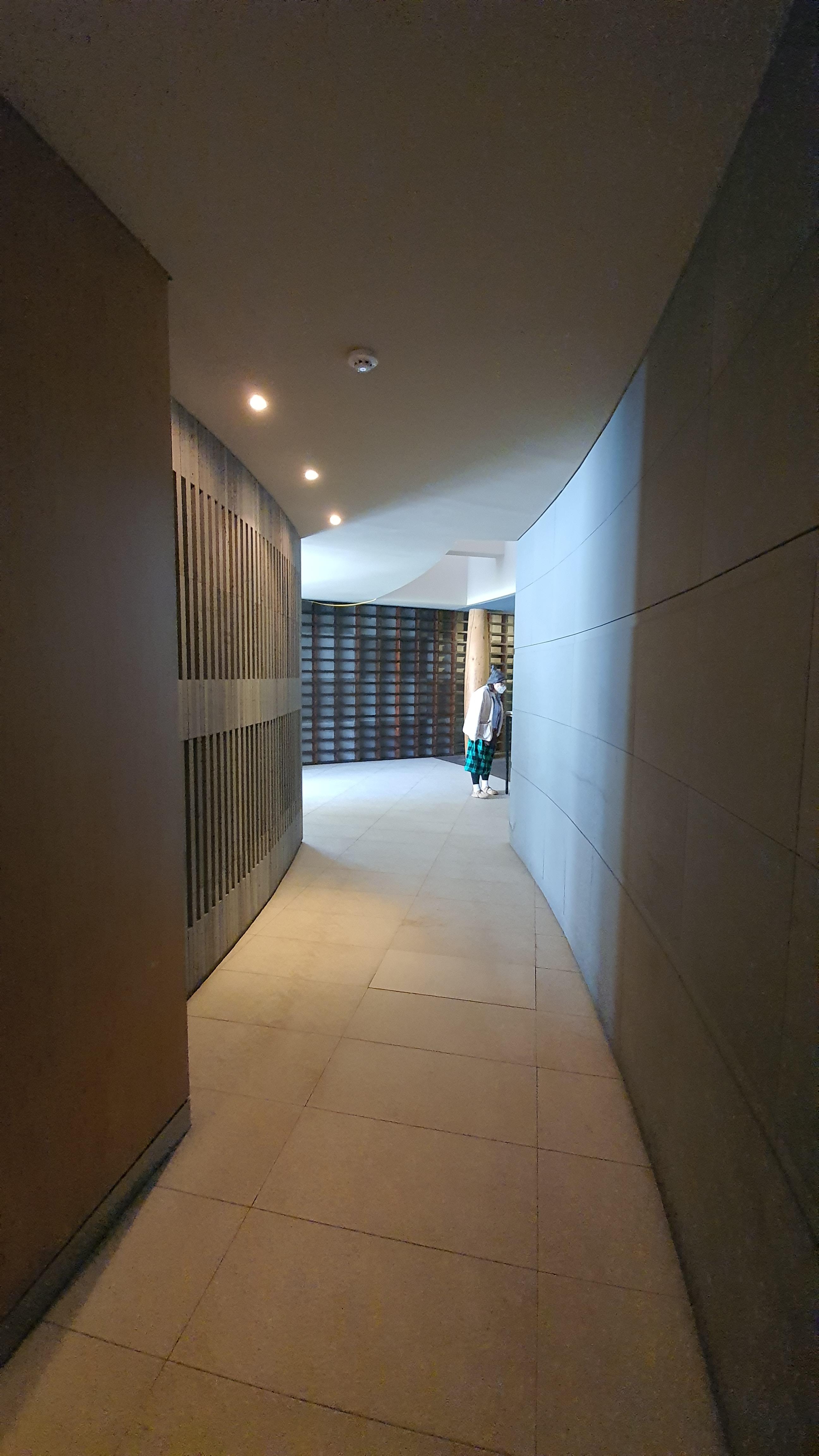 간단한 전시가 마련되어 있으며, 전시는 앞서 다룬 공간과는 달리 석재 마감으로 대비되는 모습입니다.