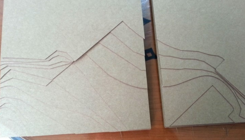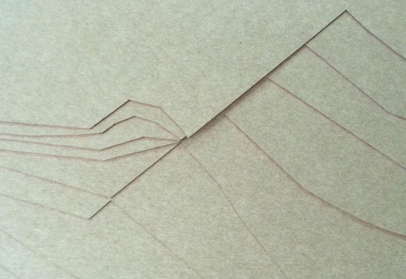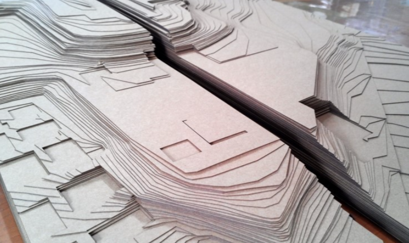 크라프트지의 경우 두께가 두껍지 않기에 등고선이 많은 대지의 표현에 매우 적합한 재료인데요.