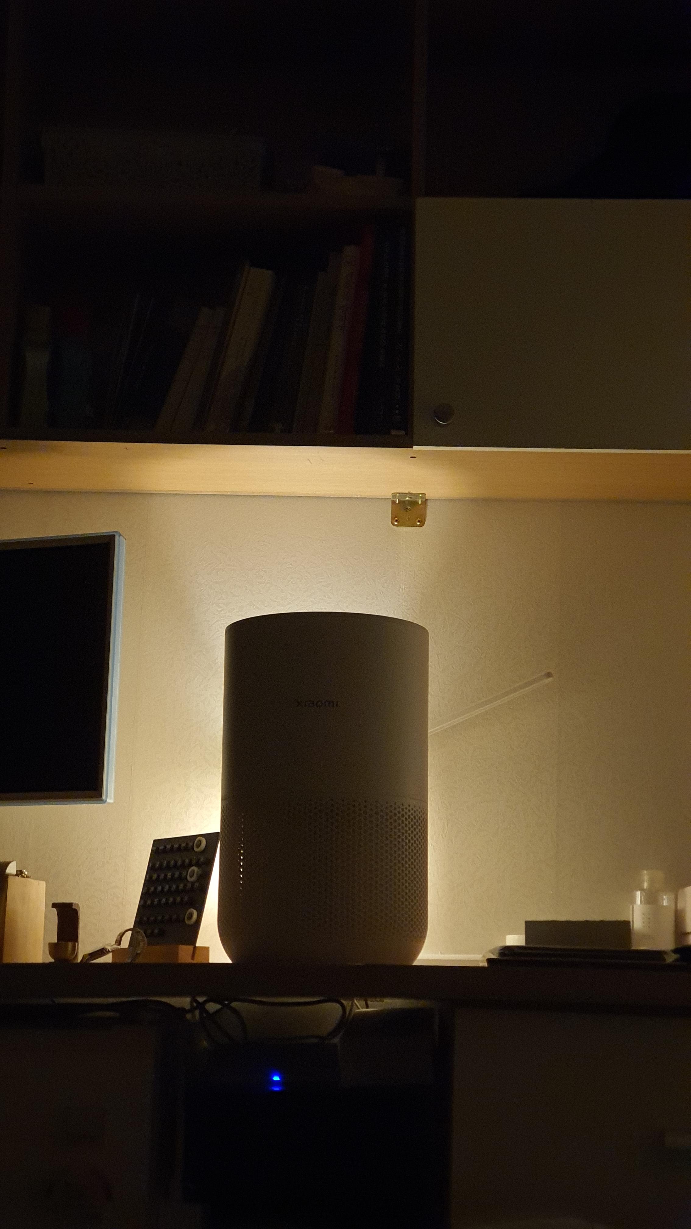 뒤에 비치는 불빛은 공기청정기 뒤에 무드등을 둬서 그렇습니다.